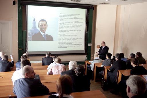29 октября 2010г. в Зале Ученого Совета Главного корпуса МГТУ семинар-клуб «Диалог» Факультета социально-гуманитарных наук, семинар «Проблемы преподавания экономики и менеджмента на переломе эпох» (НУК ИБМ) совместно с Инновационным центром «И5» провел встречу с заместителем генерального директора по стратегическому развитию Корпорации «Росатом» Петром Георгиевичем Щедровицким. Лейтмотивом мероприятия стала тема «Команда как фактор развития экономики будущего». На встрече были рассмотрены проблемы поиска оснований для формирования современных производственных коллективов, проблемы профессиональной кооперации в России и мире, а также различные технологии коллективного управления и самоорганизации (фото с встречи).